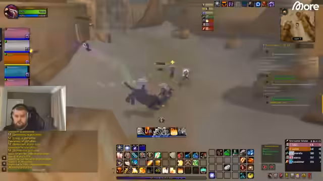 04:50:09Der Streamer befindet sich in der Zone Tanaris und sucht nach einer spezifischen Quest, die ihn in die Wüste führt. Dabei diskutiert er über das Leveln in Classic World of Warcraft und vergleicht es mit Burning Crusade und Lich King. Die Chatuser vermuten fälschlicherweise, dass er Mitte 30 ist, doch er klärt auf, dass er tatsächlich 28 Jahre alt ist, und lacht über die abschätzenden Kommentare.