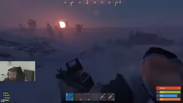 00:10:19Nach der Ausstattung des Shops beginnt der Streamer, die Umgebung seiner Base zu sondieren. Er meldet erste Feindkontakte und kämpft gegen umherziehende Gegner. Es kommt zu Scharmützeln, bei denen er Loot sicherstellen will, wobei er mit der Taktik des Roofcamping konfrontiert ist. Er beobachtet Nachbar-Basen und analysiert deren Schwachstellen für einen möglichen späteren Raid.