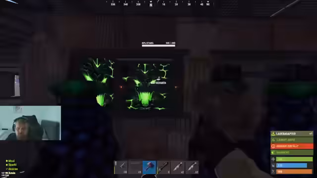 00:14:28Die Vorbereitungen sind abgeschlossen und der Raid wird gestartet. Das Team stürmt eine Nachbar-Base und wird dabei intensiv beschossen. Es kommt zu heftigen Kämpfen, bei denen der Streamer verwundet wird und Loot verliert, was zu Frustration führt. Nachdem es gelungen ist, die Gegner zu eliminieren, wird die Base systematisch geplündert und wichtige Ressourcen wie Sulphur und Rohöl geborgen.