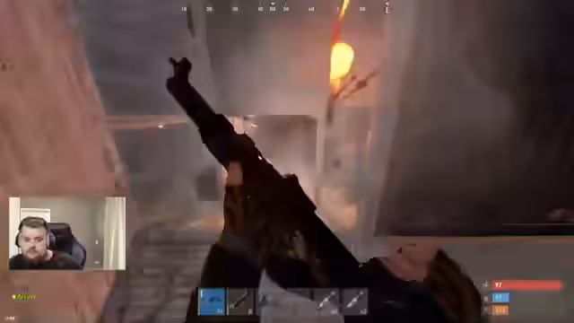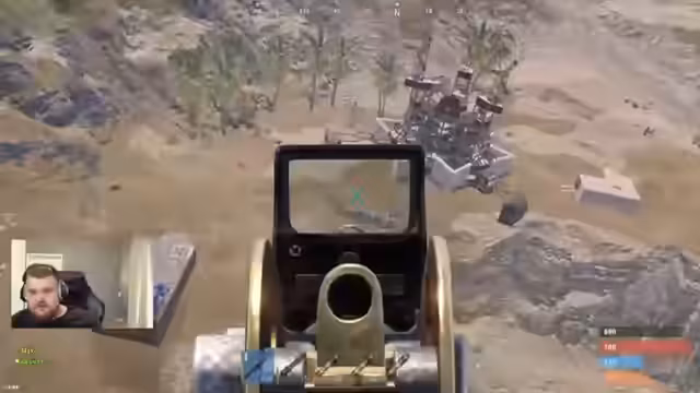 05:57:40Der Streamer fliegt mit einem Team über die Karte, um potenzielle Raidspots zu scannen, und bemerkt, dass eine Sulfur-Quarry bereits von jemandem geplündert wurde. Eine kleine PvP-Base, die aus einer Meta-Basis besteht, wird identifiziert und ein kurzer, intensiver Kampf entbrennt, in dem beide Gegner getötet werden. Der Loot, bestehend aus wenigen Metall- und Ledersorten, wird als geringfügig, aber der Kampf selbst als spannend beschrieben.