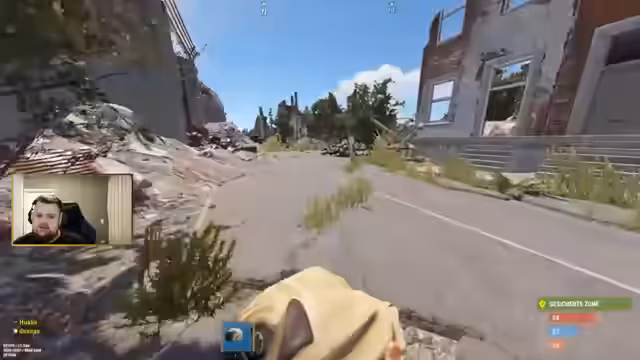 01:48:25Die Situation im Stream ist extrem angespannt, als mehrere Gegner das Dach der Basis stürmen und mit Miniguns beschießen. Streamer und sein Team sind in einem kritischen Kampf um das Überleben, bei dem strategische Entscheidungen wie das Verteidigen des Daches oder der Versuch zu fliehen getroffen werden. Der Druck steigt, als Gegner immer weiter nachrücken und die Verteidiger in die Defensive zwingen.