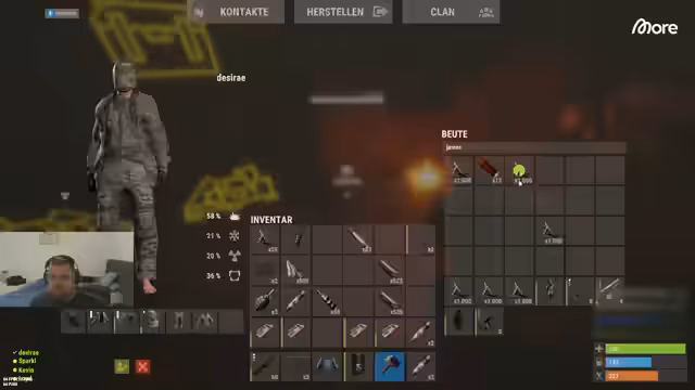 00:01:46Der Streamer beschreibt die Eroberung einer Außenbasis, wobei er feststellt, dass ein großer Teil der Einrichtungsgegenstände, wie electrical furnaces, zerstört wurde. Die feindliche Gruppe scheint gezielt vorgegangen zu sein und hat sogar das Boot gestohlen. Nach einem Scharmützel, bei dem der Streamer anscheinend selbst das Ziel war, führt er eine Gegenoffensive an. Er und sein Team stürmen die feindliche Basis und töten mindestens sechs Gegner, wobei sie beachtliche Beute, darunter vollständige Ausrüstung (AKs und Helm), sicherstellen können. Nach diesem erfolgreichen Raid zieht sich das Team zurück, um strategisch Vorbereitungen für die nächsten Schritte zu treffen.