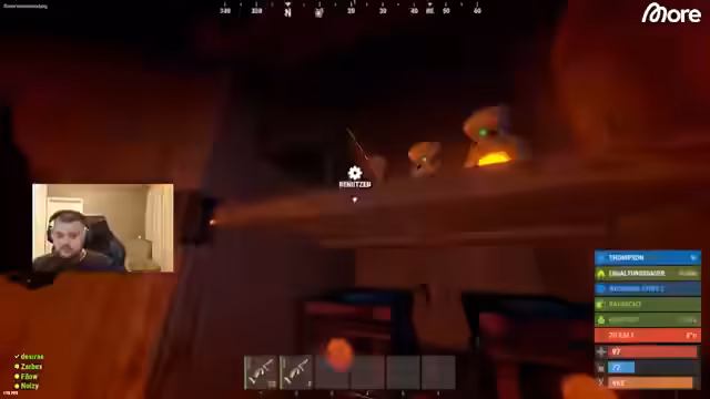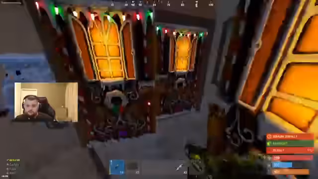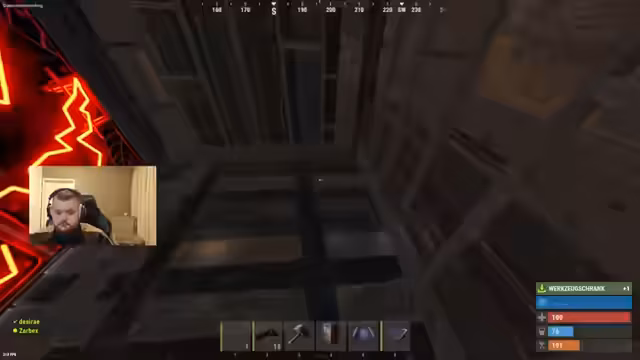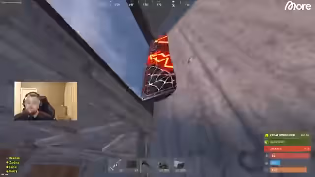 03:12:17Das Team koordiniert sich beim Farmen und Bekämpfen von Nachbarn. Es wird strategisch besprochen, wie man gemeinsam Ressourcen sammelt und Positionen einnimmt. Dabei kommt es zu Spannungen mit nahegelegenen Spielern, die als Bedrohung wahrgenommen werden. Die Gruppe versucht, durch abgestimmte Bewegungen und taktische Entscheidungen die Überhand zu gewinnen, während gleichzeitig technische Herausforderungen wie das Verlassen von Dächern diskutiert werden. Es zeigt sich die typische Dynamik von Rust-Sessions mit wechselnden Allianzen und Konflikten.