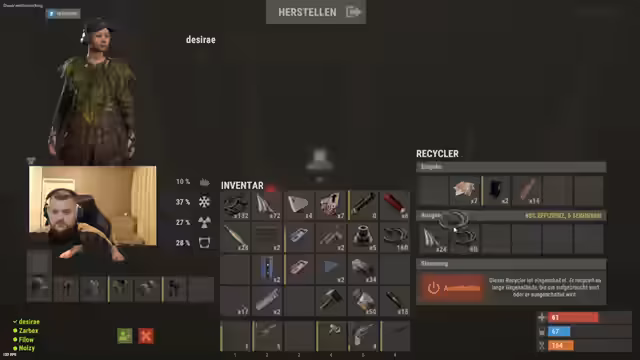 06:40:52Nach Verlusten in Kämpfen konzentriert sich die Gruppe auf die Vorbereitung von Raids auf Nachbarbasen. Sie sammeln dringend benötigte Ressourcen wie Stoff und Holz, planen Angriffe und diskutieren mögliche Beute. Es gibt Probleme mit fehlenden Heilitems und Munition, die die Operation erschweren. Die Atmosphäre wird frustrierter, als klar wird, dass die Nachbarn offline sind und ihre Basen ungeschützt zurückgelassen haben, was die Motivation für einen Angriff steigert.