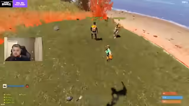 05:26:50Das Team führt direkte Kämpfe mit anderen Spielern, versucht, Nachbarn zu raiden und deren Ressourcen zu looten. Es werden taktische Manöver wie das Flankieren von Gegnern und das Nutzen von überlegener Ausrüstung (z.B. Kevlar-Sets) diskutiert. Die Priorität liegt auf dem Eliminieren von bewaffneten Gegnern, während unbewaffnete 'Naked'-Spieler ignoriert werden.