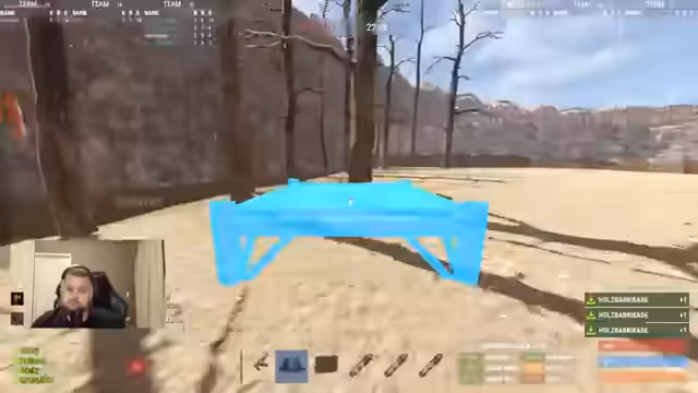 03:36:59In der einstündigen Aufbauphase wird die Strategie besprochen. Das Team plant, sich aufzuteilen und Ressourcen wie Erz, Straßen und Holz zu farmen, um eine starke Basis zu errichten. Es wird diskutiert, ob man sich nahe dem Monument bauen soll oder in der Nähe des Flughafens, um Military-Crates zu looten, wobei die genauen Lootspots und Strategien noch unklar sind.
