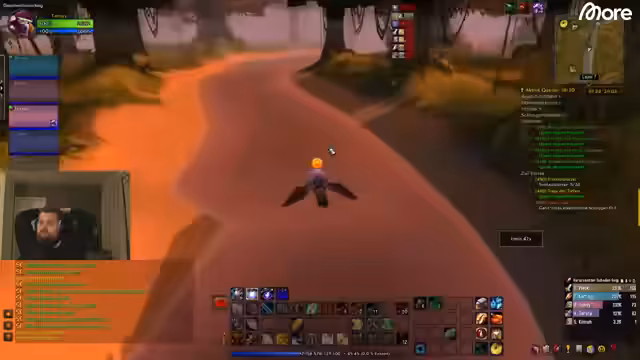 12:08:00Die Gruppe plant nach Negolashs Besiegung weitere Elite-Quests. Diskutiert wird, ob sie die Quests sofort abgeben oder Items behalten sollen. Parallel findet eine Unterhaltung über fliegende Mounts in WoW Retail statt, wobei der Streamer erwähnt, dass man in Dragonflight überall fliegen kann, sogar auf Hausdächer. Die Gruppe beschließt, die Quests nicht abzugeben, um mehr XP zu sammeln, und plant, nach Dämmerwald weiterzureisen, um dortige Höhlenquests zu erledigen.