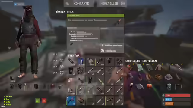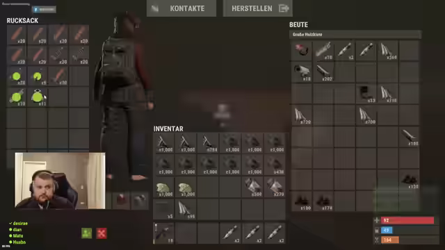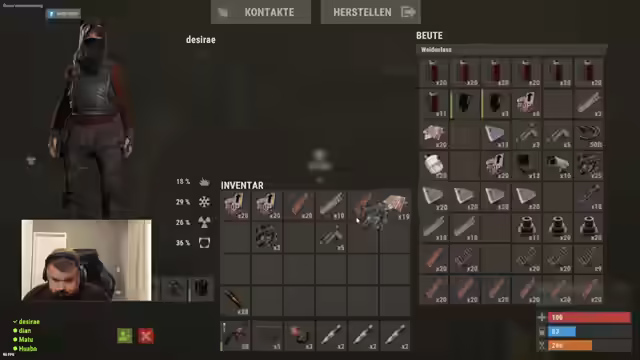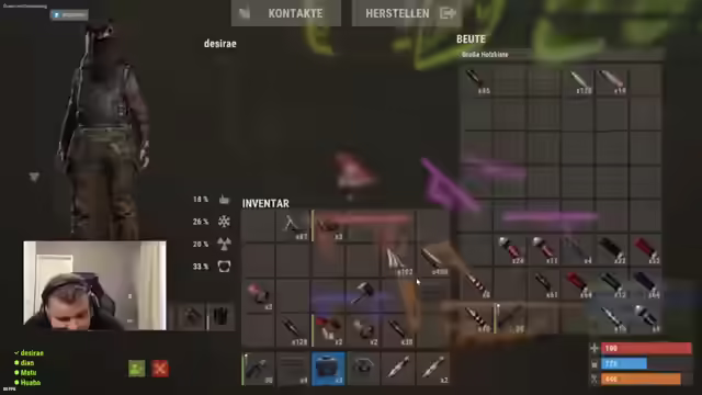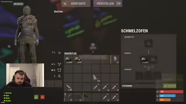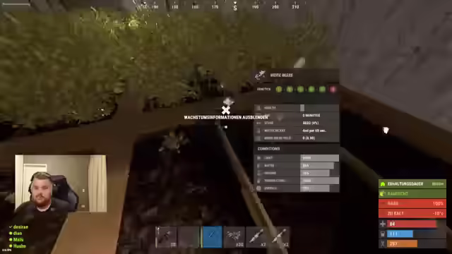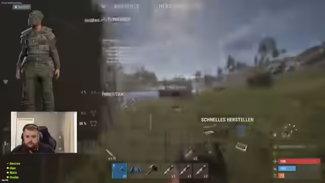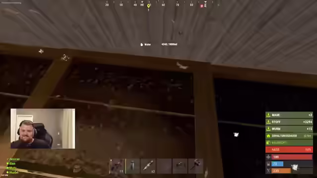 01:35:06Es wird über die Notwendigkeit von mehr Walls gesprochen und beschlossen, Holz zu farmen. Ein Spieler möchte eine Babybase bauen. Es wird diskutiert, dass es ungünstig ist, nur eine Dreierwerkbank unten zu haben. Ein Spieler fragt, ob er mit Chiller-Kit-Farmen gehen soll. Es wird die Frage aufgeworfen, warum immer alles weggetragen wird, wenn man nicht online ist. Ein Spieler wird beim Farmen von zwei Gegnern überrascht und getötet. Es wird diskutiert, ob man die AK hätte raustragen sollen. Ein Spieler wird von Wespen geplagt. Es wird überlegt, wo man noch abfahren kann, um Metall zu bekommen. Ein Spieler erinnert sich daran, dass Hoaber gesagt hat, dass der Streamer nicht vor 3 Uhr aufsteht. Der Streamer wird aus der Base gepusht und stirbt. Es wird diskutiert, dass man die Augen aufmachen muss und nicht einfach im Busch campen sollte. Ein Spieler wird abgeholt und freut sich darüber.