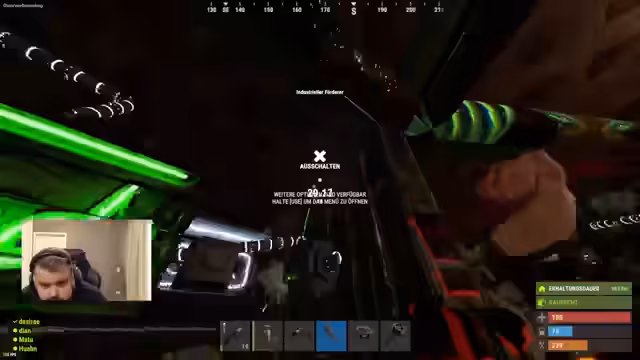 04:26:41Der Stream beginnt mit der Diskussion über die aktuelle Strategie für einen Raid auf einen anderen Leuchtturm. Es werden verschiedene Angriffsmöglichkeiten durchgesprochen, wie das Besorgen einer Redcat oder das Nutzen von Hubs. Parallel dazu wird die Lage der gegnerischen Base analysiert und das Potenzial für Beute wie Metall und Sulfur bewertet. Auch die Kosten für benötigte Bauteile wie Werkbankfragmente werden erwähnt, was auf ein systematisches Vorgehen bei der Ressourcenbeschaffung hindeutet.