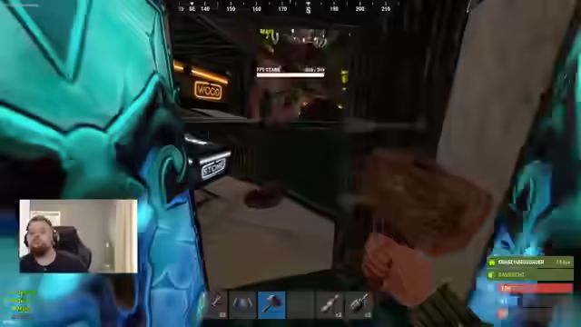 06:17:28Es wird überlegt, ein Raid-Target zu suchen und ob man große Öl raiden soll. Ein Teammitglied will auf den Pamelturm fliegen. Es wird ein Heavy-Helm benötigt und ein Teammitglied hat Akel gelernt. Es wird überlegt, eine Kamerastation zu bauen und Lowgrade-Fässer mitzunehmen. Ein Teammitglied geht kurz pinkeln und es wird festgestellt, dass sich eine Babybase am Fluss befindet. Es wird überlegt, diese zu raiden. Es wird festgestellt, dass ein Scrappy auf einer Base landet, die am Raiden ist. Die Gruppe stellt fest, dass die Jungs, die am Raiden sind, die Raketen schon rausgenommen haben. Es wird überlegt, wo sich der Dome-Shop befindet und ob dieser offline gemacht wurde.