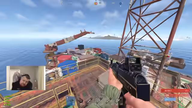 06:40:08Ein Taucher ist tot und es wird vermutet, dass sich noch einer im Moonpool befindet. Ein Teammitglied lootet und nimmt Lowgrade Barrels mit. Ein Boot kommt und es wird vermutet, dass es sich um einen Geisterfahrer handelt. Ein Taucher ist tot und es wird vermutet, dass sich noch einer im Moonpool befindet. Ein Teammitglied lootet schnell und will Lowgrade Barrels haben. Es wird überlegt, ob man auf der Erde raufspringen kann. Ein Teammitglied hat ein kaltes Getränk und es wird überlegt, welche Kiste ab ist. Es wird über einen Rucksack diskutiert und was darin liegt. Es wird festgestellt, dass ein Teammitglied einen Frosch im Hals hat. Es wird überlegt, ob zwei Leute im Moonpool sind und man abhauen soll.