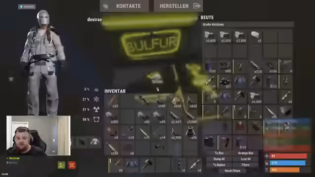 01:57:50Die Konfrontation mit einem rivalisierenden Team im Oilfield eskaliert. Der Streamer und seine Mitspieler stellen fest, dass eine Öl-Basis nicht gelootet wurde, da das Team gegen eine bestimmte Kampagne gespielt hat. Die Situation spitzt sich zu, als eine offline-Raider-Base lokalisiert wird und die Entscheidung getroffen wird, anzugreifen. Der Streamer verliert in der hektischen Situation einen Großteil seiner Ressourcen und muss feststellen, dass die Angreifer ihm teuer zu stehen kommen.