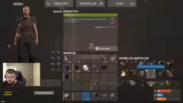 00:00:00Der Stream startet mit der Aufforderung, das Spiel zu öffnen und der Erwähnung eines neuen Auftrags, der die Kameraanpassung erfordert. Streamer tabsy erwähnt seine traditionellen schlechten Spawns und nennt eine Reihe von Namen, die ihm einfallen. Nach einer kurzen Pause wegen eines technischen Problems wird die weitere Strategie besprochen, die vom Erfolg eines Spawn abhängig ist, und ein Mitspieler namens Lewis wird erwähnt, der später um 17 Uhr dazustoßen wird. Aufgrund des Mangels an benötigten Ressourcen wie Holz und Metallen entscheidet sich tabsy dafür, eine Rucksack Packung mitzunehmen.