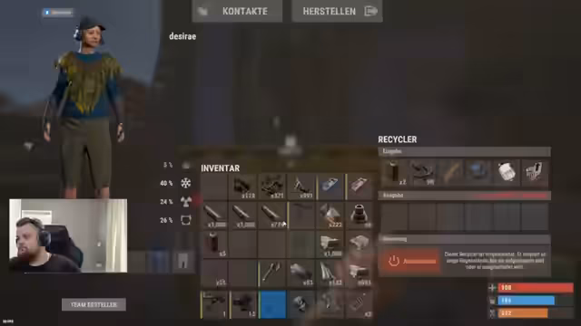 03:54:31Die Themen des Streamers drehen sich hauptsächlich um das Spiel Rust, wobei er häufig über Gameplay-Erlebnisse, strategische Entscheidungen und persönliche Pech- und Glückssträhnen spricht. Es gibt Diskussionen über Spielorte wie das Klärwerk und Militärtunnel. Der Streamer analysiert Gegner, die er für überlegen hält, und teilt seine Bewegungen im Spiel mit. Dabei erwähnt er gezielt das plötzliche Erscheinen von Gegnern und seine Versuche, sich zu verstecken oder zu fliehen, um Angriffen zu entgehen.