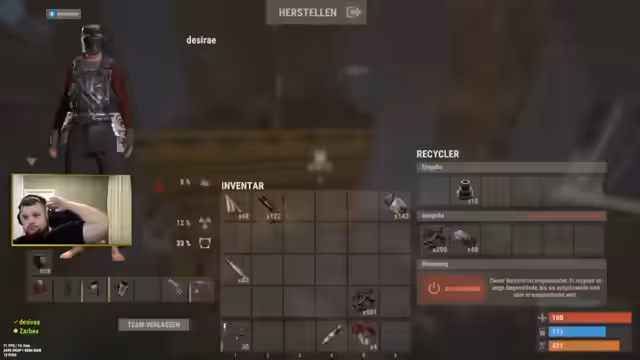 05:19:12Die Session beginnt mit dem Sammeln von Ressourcen, wobei das Ziel ist, 400 Scraps zu recyceln, um eine Blue Card zu erwerben. Der Fokus liegt auf dem Erwerb eines Rocket Launchers, entweder durch Kauf oder Herstellung an der Werkbank, was Scraps erfordert. Es folgt ein kurzer Exkurs über einen Glockenturm als Scharfschützenposition und die Entdeckung von Spielern in der Nähe einer Basis. Es kommt zu einem Kampf mit anderen Spielern, bei dem Taktiken wie das Ausweichen von Angriffen und der Einsatz von Spritzen zur Heilung eingesetzt werden. Die Spieler looten ihre Gegner und setzen ihre Erkundung fort, wobei sie stets auf der Hut vor weiteren Feindkontakten sind. Die Spieler diskutieren über die Notwendigkeit, unauffällig zu agieren, um nicht die Aufmerksamkeit anderer Spieler auf sich zu ziehen, die möglicherweise in der Nähe campen. Der Plan, zum Outpost zu gehen, um eine Blue Card zu kaufen, wird diskutiert, zusammen mit der Idee, herumliegende Gegenstände zu sammeln und zu recyceln, um an Ressourcen zu gelangen. Die Ressourcenbeschaffung gestaltet sich schwierig, da die Spieler ständig von anderen Spielern angegriffen werden. Das Ziel ist es, genügend Components für den Erwerb einer Red Card zu sammeln, um die Auric betreten zu können.