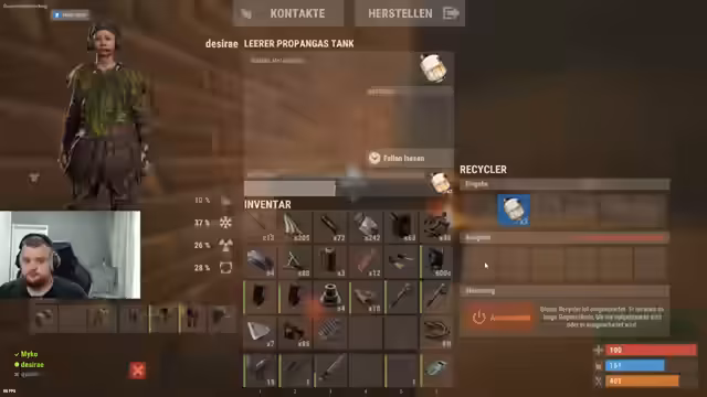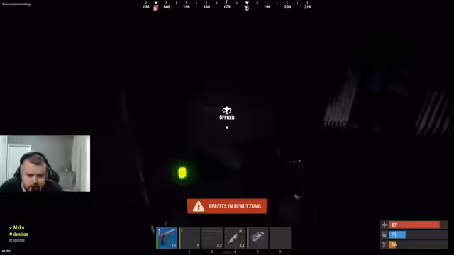 00:24:25Der Streamer drückt seine tiefe Frustration darüber aus, dass er es kaum schafft, eine 'Blue Card' zu finden. Er ist der Meinung, dass alle Monumente von anderen Spielern abgefarmt werden, bevor er überhaupt die Chance hat. Er kritisiert das Spielprinzip, dass man nicht in kleineren Gruppen spielen kann, da der Server zu voll sei und man ständig von Übermacht konfrontiert wird.