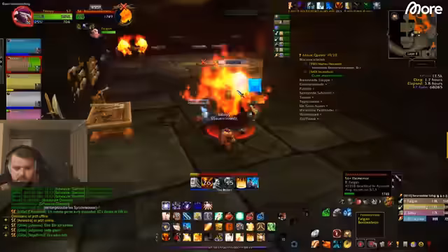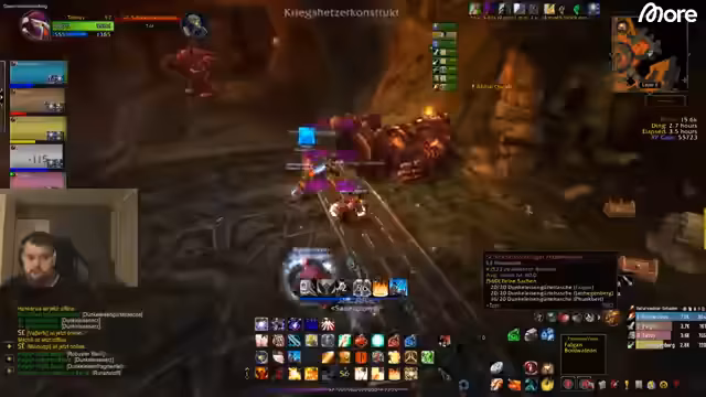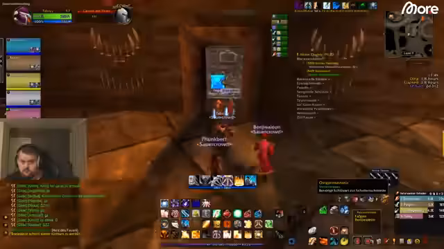 06:23:37Nachdem ein Boss (vermutlich Phalanx) besiegt wurde, werden Loot und Strategien diskutiert. Ein Bossfight mit Golems und Chain-Lightning-Mechaniken wird vorbereitet. Das Team übt Positionierung, um Schaden zu minimieren, und plant Cooldowns für Adds. Ein Problem mit Aggro-Management wird identifiziert, bei dem ein Caster unbeabsichtigt angegriffen wurde. Verbesserungen für zukünftige Fights werden skizziert, wie das Sammeln von Adds in einer Ecke. Der Kampf gegen einen Säufer-Boss in der Bar wird vorbereitet, wobei das Zerstören von Fässern einen Boss-Spawn auslöst. Das Team kauft Dunkeleisen-Bierbecher, um ein Event auszulösen, und vermeidet, neutrale Mobs in der Bar zu triggern.