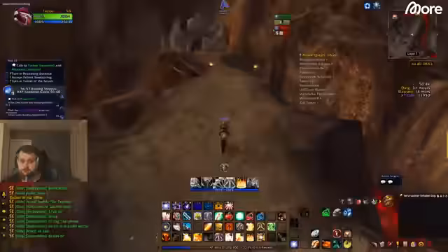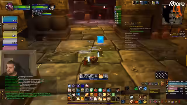 06:07:24Nachdem der untere Teil des Dungeons erfolgreich gecleart wurde, konzentriert sich das Team auf die Herstellung des Schlüssels mit Ironfell. Der Dungeon wird als riesig und anfangs linear beschrieben, mit Hinweisen auf eine laterale Route. Ein kurzes Fenster wird geöffnet, um den Überblick zu behalten. Ein kleiner Mob-Spawn wird als unproblematisch eingestuft. Power of Evil wird darauf hingewiesen, nicht zu low zu tapen, während Spell-Einstellungen auf 15% diskutiert werden. Die Interaktion mit der Startruhe für den Schlüssel und XP wird als positiv hervorgehoben. Ein unerwarteter Buff und die Notwendigkeit von Ausdauer-Rebuffs werden erwähnt, gefolgt von der Vorbereitung auf den hinteren Teil des Dungeons, wo ein Rad zur Türöffnung genutzt werden soll.