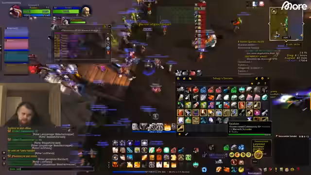 07:10:11Der Streamer plant Dungeon-Läufe in Blackrock Tiefen, diskutiert DPS-Strategien und optimiert Ausrüstung, darunter ein Item mit 2% Grid-Bonus, das er trotz starker statischen Werte in Betracht zieht. Die Gruppenzusammenstellung für Raids wird besprochen, wobei er einen Dagger mit kritischem Schaden erwägt, aber ablehnt, da er zu zerbrechlich ist. Gemeinsam mit dem Chat werden Fähigkeiten wie Stunning und Schadensoptimierung abgeglichen, um effiziente Runs zu planen.