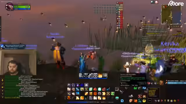 07:50:00Der Streamer vergleicht die Effizienz von Questing versus Mob-Kills für Erfahrungspunkte, wobei er feststellt, dass Quests pro Stunde mehr XP liefern. Als Paladin kritisiert er die geringe Schadensausbeute im Vergleich zu Mages und überlegt, ob er wechseln soll. Die Interaktion mit anderen Spielern über Level-Unterschiede und optimale Grinding-Spots zeigt die Strapazen des Endgame-Levelings auf.