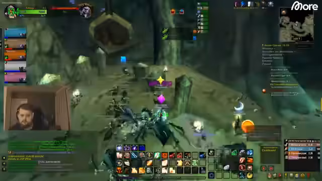 07:15:54Die Gruppe betritt den Kloster-Stockwerk des Schattenfelstals. Fokus liegt auf der Koordination beim Pullen von Mobs und dem effizienten Heilen. Der Streamer betont die Notwendigkeit, als Tank Aggro zu kontrollieren und gibt Instruktionen zur Platzierung, um Gegner nicht zu spalten. Es werden Tränke geteilt und Mana-Regenerationen kurzzeitig angehalten, um die Ressourcen schonend einzusetzen. Die Dynamik zwischen Tank und Heiler wird als entscheidend für den Erfolg im Dungeon angesehen.