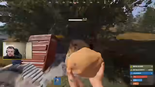 01:27:55Ein unglücklicher Treffer reduziert den Streamer trotz vermeintlicher Plot-Armour auf wenige HP. Aufgrund des anhaltenden Drucks und der erlittenen Verluste beschließt die Gruppe, eine kleinere Ölquelle zu sichern und die Aktion zu beenden. Man plant, mit erbeuteten Ressourcen direkt eine neue Basis zu bauen.