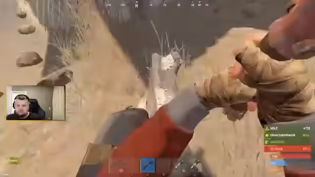 02:56:54Der Stream wird deutlich intensiver, als eine gegnerische Gruppe entdeckt wird. Ein Spieler wird von einem Scharfschützen beschossen, während er in der Nähe ihrer Basis ist. Es folgt eine hektische Flucht und die Suche nach einem sicheren Ort. Später wird eine gemeinsame Aktion gegen die feindliche Truppe gestartet, um deren Cargo-Spawn zu attackieren und deren Ressournen zu plündern.