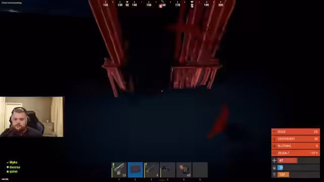 02:18:15Die Spieler müssen sich um ihr Ressourcenmanagement kümmern und überlegen, wie sie Stoff und Holz bekommen. Es wird vorgeschlagen, Kakteen abzubauen. Die Minigun wird als ineffektiv angesehen, während die P2 bevorzugt wird. Ein Spieler hat eine Kettensäge und zwei Jackhammer, was als sehr wertvoll erachtet wird. Es wird besprochen, wo man Holz zum Bauen findet. Ein Spieler droppt Revolver und Munition. Die Spieler planen, eine 2x1 oder 2x2 Basis zu bauen. Es wird über die Gefahr gesprochen, wenn Gegner mit einer Spitzhacke auftauchen und schnell zu einer Waffe wechseln. Die Spieler sind sich unsicher, was der Minicopter gemacht hat, der zuvor gesichtet wurde. Es wird überlegt, ob man Militärtunnel oder Unterwasserlabore besuchen soll. Eine 1x3-Basis mit sechs Leuten wird unter den Spielern entdeckt. Die Spieler sind besorgt über die Sicherheit ihres Standorts und die Möglichkeit, schnell offline zu gehen. Ein Spieler wird getroffen, während er versucht, eine Basis zu bauen. Es wird über die Wahl des Standorts für die Basis diskutiert, wobei ein Wald als weniger diebessicher angesehen wird. Die Spieler wollen nicht wieder sterben, weil sie nichts sehen können.