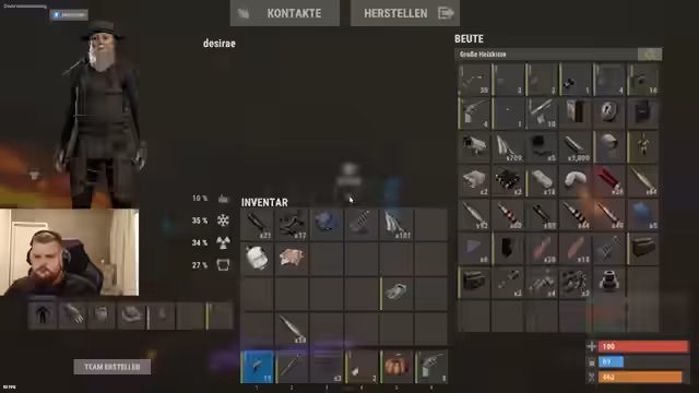 01:31:07Ein Spieler gibt Ratschläge zum Beitritt zu Discord-Servern, um Informationen über offizielle Server und deren Wipe-Zeiten zu erhalten. Es wird betont, dass die meisten Weekly-Server nach drei bis vier Tagen tot sind. Ein anderer Spieler wird angewiesen, keine Crossbow-Missionen im Außenposten zu machen, sondern auf einen Teamkollegen zu warten, um sofort loslegen zu können. Die Möglichkeit, einen Revolver zu craften, wird erwähnt, und ein Spieler hat bereits 30 Schuss extra für den Revolver. Ein Spieler befindet sich in der Safe Zone und bietet an, Gegenstände fallen zu lassen. Es wird über das Recyceln von Handschuhen gesprochen, um genug Stoff für die Herstellung von zwei Revolvern zu haben. Ein Teamkollege wird gebeten, sich zu heilen, da er stark blutet. Es wird besprochen, wie lange es dauert, sich vollständig zu heilen, und ob es sinnvoll ist, dies in einem Komfort-Cottage zu tun. Die Verfügbarkeit von Munition für den Revolver wird bestätigt, und es wird überlegt, einen Ballonflug zu unternehmen, wofür Logit benötigt wird.
