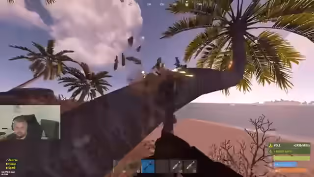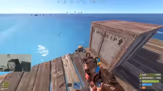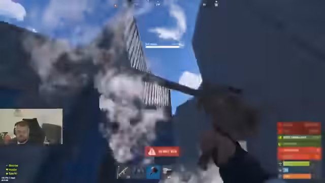 00:11:50Der Streamer gerät in Kämpfe mit anderen Spielern, führt jedoch auch schonungslos über Map-Glitches wie unter der Karte verschwundene Spieler und Bots an. Es kommt zu Verlusten durch feindliche Attacken, teilweise wegen eines Fehlers, der einen vom Desktop warf. Trotzdem findet er auch Loot, wie eine Madcat und Materialien. Die Gruppe diskutiert über den Bau von Bait-Häusern und die Funktionalität von Blue und Red Cards, wobei die Unclearness der Monuments als problematisch angesehen wird.