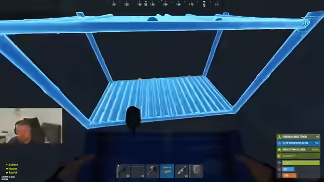 05:22:09Nachdem der Loot gesichert ist, beginnt das Team mit dem Ausbau der Basis. Es werden Tore abgebaut, Materialien wie Holz und Scrap sortiert und benötigt. Die Diskussion dreht sich um das Recycling von Schrott und die Herstellung von Elektroöfen. Man analysiert die Spielweise anderer Streamer und deren extrem hohe Spielzeiten. Man verfeinert die Basisstruktur, indem man Dachluken und Eingänge strategisch platziert, um die Verteidigung zu verbessern und die Effizienz des Farmings zu steigern.