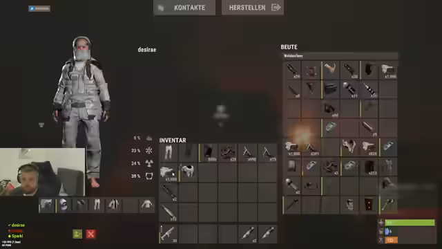 03:31:10Im Stream wird intensiv nach Ressourcen gesucht, was zuweilen chaotisch abläuft. Die Suche nach Floppern und anderen Gegenständen bleibt zunächst erfolglos. Der Streamer und seine Kameraden haben Probleme mit ihrer Ausrüstung, da wichtige Gegenstände wie die Kalasch fehlen. Eine vorgenommene Durchsuchung einer Dohle und eine ausgerufene Blutkurt deuten auf einen Raubzug hin, bei dem jedoch nur wenig Beute erzielt wurde. Die danach begonnene Suche nach Loot führt zur Entdeckung eines Mini-Crates, aber das Aufstellen eines Regals gestaltet sich schwierig.