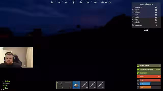 00:39:35Der Stream gerät in vermehrte PvP-Kämpfe, die als frustrierend empfunden werden. Er stellt fest, dass Angriffe auf die Base scheinbar sofort nach Raketenstarts erfolgen und vermutet ein gezieltes Vorgehen gegen ihn. Es werden konkrete Fälle von Kampfsituationen beschrieben, bei denen Gegner überraschend auftauchen und den Streamer töten. Diese ständigen Angriffe führen zu großer Frustration und zu der Frage nach der Fairness im Spiel und auf dem Server.