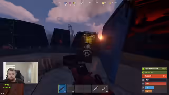 10:11:09Nach einer kurzen Pause, in der der Streamer Material wie Rockets und C4 organisiert, beginnt der koordinierte Angriff auf eine feindliche Basis. Er gibt klare Anweisungen an sein Team, um gemeinsam vorzugehen. Die Koordination scheint zu funktionieren, da die Gegner von mehreren Seiten unter Druck gesetzt werden. Der Streamer äußert sich erleichtert, als der Angriff erfolgreich ist und die Basis geräumt wird, während die Gegner offline gehen.