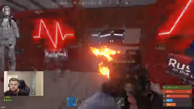 07:38:29Der eigentliche Raid auf die gegnerische Base beginnt chaotisch. Der Streamer feuert versehentlich Raketen ab, die sowohl den Gegner als auch sich selbst in Gefahr bringen. Nachdem der Gegner besiegt ist, entsteht ein neuer Plan, die Basis weiter zu zerstören, aber der Streamer verliert durch einen explosiven Unfall mit einer Rakete sein gesamtes Equipment und stirbt. Der Raid endet somit mit einem erheblichen Verlust an Ressourcen und Frust.