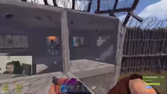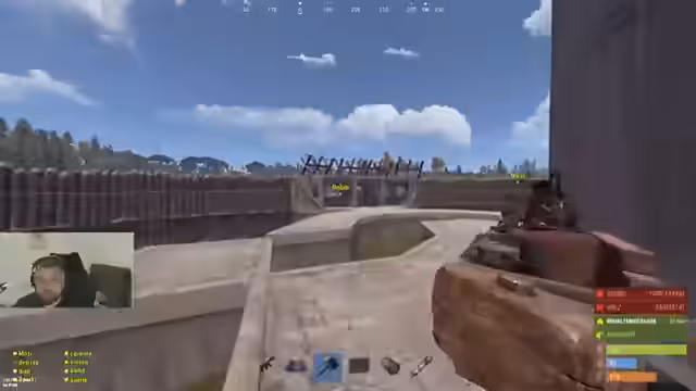 00:41:18Das Team plant, gemeinsam Straßen zu laufen, um die Spawn Beach zu sichern. Man entscheidet sich jedoch dafür, mit mehr Spielern zu operieren. Es kommt zu Angriffen auf die Basis durch ein High-Kaliber-Team. Das Team muss seine Türme verteidigen und die Outside-TCs (Tool Cupboards) schützen. Der Streamer ruft dazu auf, jeden Spieler ohne Clantag zu eliminieren. Es werden mehrere TCs (Tool Cupboards) der Gegner zerstört, um deren Angriffe zu vereiteln.