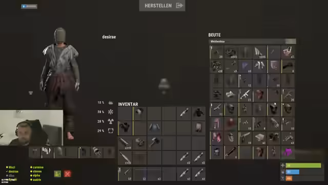 01:49:11Der Streamer bittet ein Teammitglied, die Basis zu sortieren, während er selbst an anderen Aufgaben arbeitet. Er beschwert sich, dass ein Zuschauer seinen Beutel in der Basis aufgesammelt hat. Es werden Gegenstände wie Metz-Skins und kleine Kisten erwähnt, die angepasst werden müssen. Der Streamer erwähnt auch einen geforderten Item-Drop im Chat, den er nicht aufgenommen hat. Die Kommunikation im Team wird als unorganisiert empfunden.