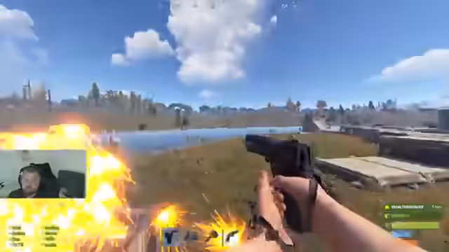 06:56:01Der Raid beginnt. Das Team um den Streamer stürmt eine gegnerische Basis, welche sich am Fluss befindet. Nach anfänglichem Widerstand wird die Basis überwältigt, der Inhalt der Kisten geplündert und der Komplettraid zerstört. Anschließend werden die strategischen Entscheidungen des gegnerischen Teams analysiert und der erbeutete Loot aufgeteilt und gesichert.
