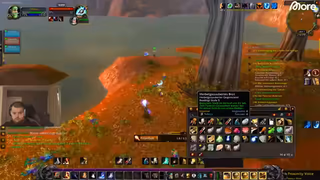 11:44:44Der Streamer passt sein Interface an, um UI-Elemente wie das ActionBar-Add-on Bartender zu verschieben und Heilungs-Spells besser zu verwalten. Er berichtet von technischen Problemen wie Disconnects und Audio-Fehlern beim Zonenwechsel. Nach einem fast tödlichen Respawn-Miss in einer Höhle optimiert er sein Setup für besseres Buffen und Kampfsteuerung.