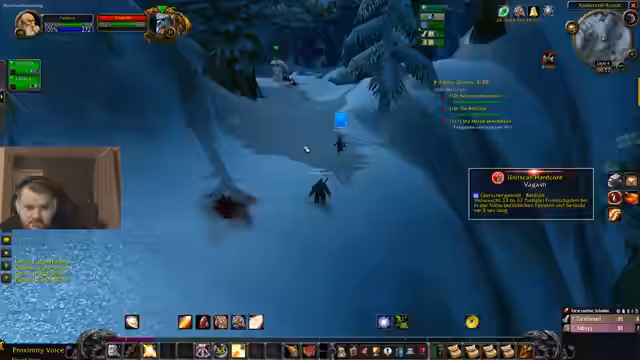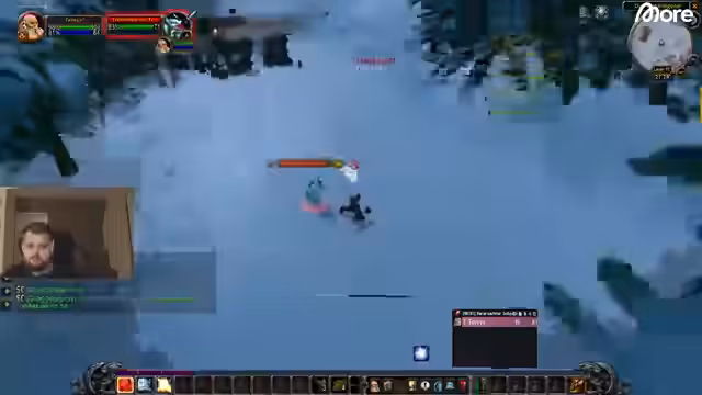 09:11:14Nach einer Pause beginnt die Gruppe den Boss-Kampf in der Höhle. Sie nutzen Klassenvielfalt (Nachtelf, Zwerg, Mensch, Gnom) und Koordination: Jeder spielt eine Rolle mit Schieben, Freezen und Schadensverteilung. Trotz fehlender Heiler und Herausforderungen mit Adds verläuft der Kampf anfangs strukturiert. Michael und Leon übernehmen die Casting- und Kiting-Rolle. Als der Boss fast besiegt ist, kommt es jedoch zu einem kritischen 50%-Hit, der die Gruppe in Bedrängnis bringt.