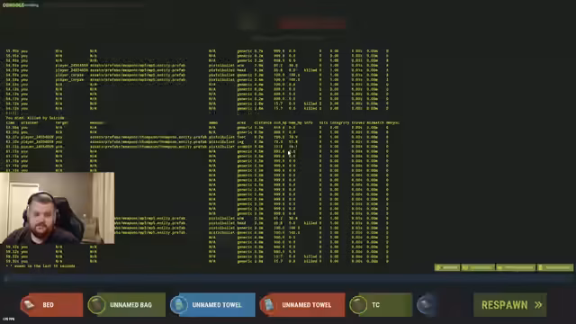 00:06:57Während des Streamings wird die Basis von einem Hacker überfallen. Der Streamer wird getötet, während er versucht, seine Basis mit einer MP5 zu verteidigen, und muss sich eine Leiter holen, um zurückzukehren. Als er ankommt, stellt er fest, dass alle Vorräte und Gegenstände gelootet wurden, was zu einem signifikanten Verlust an Ressourcen und dem Helikopter führt.