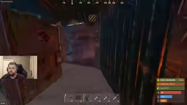 06:39:47Der geplante Raid auf eine Nachbarbasis misslingt, da der Streamer mit seinen Mitteln nicht in die Verteidigungsanlagen vordringen kann. Er ist verärgert, da er eine Menge Munition und Ressourcen für den Angriff aufgewendet hat, aber die Basis sich als unzerstörbar herausstellt. Im Nachgang analysiert er die gescheiterte Attacke und denkt über alternative Strategien nach.