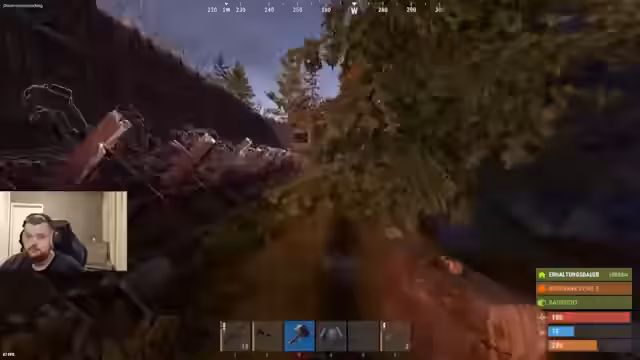 03:40:50Der Streamer fühlt sich bedroht und bemerkt, dass er von einer Gruppe namens 'Air-Trops' oder einer 'riesigen X-Railer-Truppe' beobachtet wird. Seine Sorge um einen möglichen Online-Raid steigt, insbesondere da er fast keine Holzkohle hat und keine Bäume in seiner Basis fällen möchte. Er kommt zu dem Schluss, eine große Base bauen zu müssen, um überleben und einen Minicopter schnell zur Hand zu haben. Das Gefühl von Überforderung und der Wunsch nach einem 'Crash out' aus der aktuellen Situation werden deutlich.