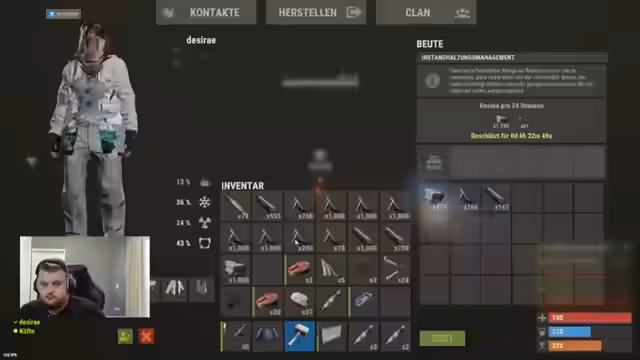01:50:53Nach dem Verlust wichtiger Ausrüstungsgegenstände wird analysiert, wie der Gegner den Loot so schnell finden konnte. Der Verdacht fällt auf Stream-Sniper, die den Chat verfolgen. Es wird ein neuer Plan geschmiedet: Man will Millie-Sets craften und die gegnerische Basis, die als Tuberkrankung mit Airlock identifiziert wurde, erneut raiden. Das Ziel ist, den verlorenen Loot zurückzugewinnen und die Position der Gegner auszunutzen.