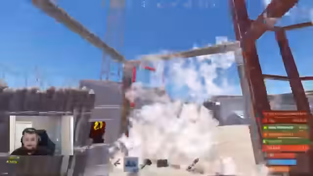 04:13:10Die Basis wird angegriffen und es wird diskutiert, wie die Gegner ausgetrickst werden können. Ein Spieler mit einer Pumpe wird gesichtet und es wird überlegt, ob es sinnvoll ist, sich zurückzuziehen und zu schießen. Die Gegner scheinen Nachbarn zu doorcampen und ein Spieler geht runter, um in Richtung der Basis zu feuern. Es wird über den Einsatz einer MP5 nachgedacht und gleichzeitig wird kritisiert, dass sinnlos Kaputtgeschossen wird, ohne einen klaren Plan zu verfolgen.