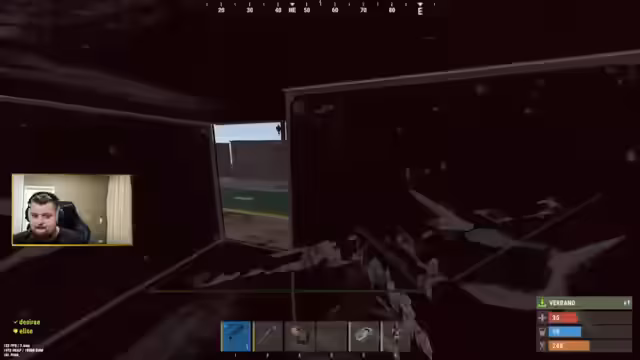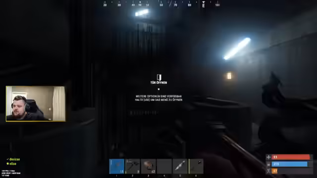 01:49:27Die Spieler sprechen über Cheat-Codes für Helligkeit und Helikopter, wobei Tabsy erklärt, dass bestimmte Tricks wie V-Shape mittlerweile gebannt sind. Sie diskutieren über die Vor- und Nachteile von Night Vision. Es kommt zu einer Auseinandersetzung mit Gegnern im Zug, bei der Tabsy einen Headshot erzielt. Die Spieler sammeln Ressourcen und stellen einen Schlafsack her. Tabsy erklärt Sebo, dass er sich einen Map-Hider gemacht hat. Die beiden recyceln und beleidigen andere Spieler. Tabys erklärt Sebo, dass er zwei Nailguns herstellen soll. Die beiden sind auf einem anderen Server und spielen keinen Film. Tabys erklärt Sebo, dass er dauerhaft seinen Voice-Chat ausgeschaltet hat. Tabys gibt Sebo seine Nailgun.
