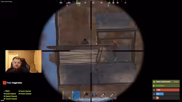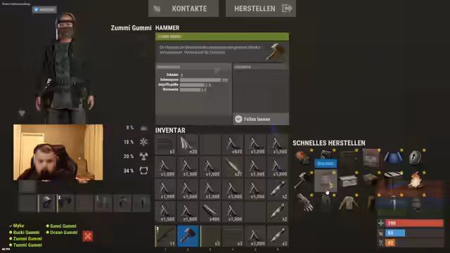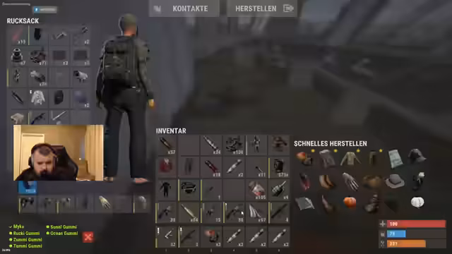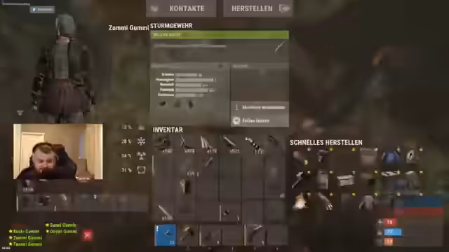 01:13:57Der Stream beginnt mit einer lockeren und humorvollen Atmosphäre, in der die Teilnehmer über verschiedene Themen scherzen, darunter auch anzügliche Witze. Währenddessen laufen im Hintergrund die Vorbereitungen für den bevorstehenden Raid. Es wird über fehlende Ausrüstung wie „Eggies“ und „Roadside Gloves“ gesprochen, und die Spieler diskutieren über die Effektivität von Holz- und Stoffhandschuhen. Ein Spieler namens Maiko wird aufgefordert, sich auf eine Mission zu begeben, während ein anderer Spieler, Funker, sich über seine Erkältung beklagt. Die Kommunikation ist geprägt von freundschaftlichen Neckereien und gelegentlichen Beschimpfungen, die jedoch im Kontext des Spiels als humorvoll verstanden werden. Es werden auch strategische Überlegungen angestellt, wie zum Beispiel das Platzieren von „Heavysets“ in Lockern und das Craften von „Brandammo“.