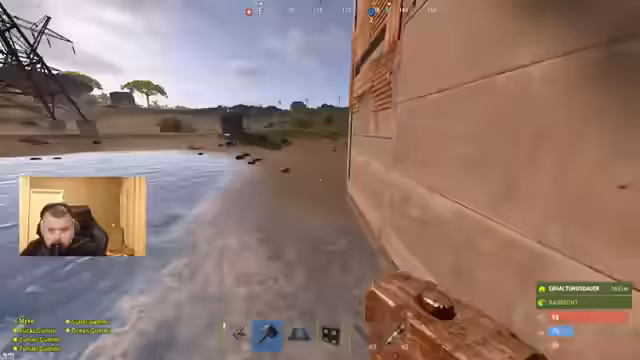 01:37:30Die Spieler analysieren potenzielle Raid-Ziele und entwickeln Verteidigungsstrategien. Es wird über die Gruppe von „Lala“, „Niki“ und „Ben“ gesprochen, die angeblich auf dem Server spielt und deren Basis als potenzielles Raid-Ziel in Betracht gezogen wird. Die Gruppe plant, eine Windmühle für die „Sam Sites“ zu bauen und die Basis weiter zu befüllen. Es wird über die Verteilung von „Hazy Kids“ und Granaten in den Betten und Kompartimenten gesprochen. Die Spieler diskutieren auch die Platzierung von „Seal Boxen“ und die Notwendigkeit weiterer Batterien für die Turrets. Die humorvolle Atmosphäre bleibt bestehen, während die Spieler sich über ihre Vorlieben beim Reisen und ihre Fähigkeiten im Spiel austauschen.