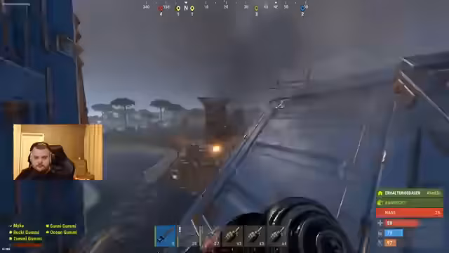 04:45:50Nach dem ersten Angriff verlagert sich die Strategie. Das Ziel ist nun nicht mehr die Verteidigung, sondern das Aussitzen der Angreifer, bis deren Rocketvorrat aufgebraucht ist. Gleichzeitig eskaliert der interner Konflikt innerhalb des Teams. Es kommt zu Vorwürfen des Betrugs und des Diebstahls von Ausrüstung. Die Kommunikation untereinander bricht teilweise zusammen, was die Situation zusätzlich verschärft und zu internen Streitigkeiten führt.