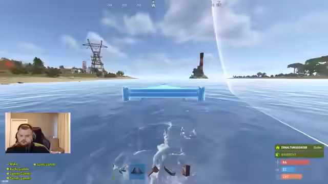 03:23:00Die Pläne ändern sich erneut. Das Team beschließt, mit einem Speedboot anzugreifen, um die gegnerische Basis vom Wasser her zu erreichen. Der Streamer positioniert sich am Ufer und fordert die Mitspieler auf, ruhig zu bleiben, um die Verteidiger nicht zu alarmieren.